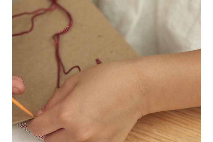 我們選擇粗的毛線針,讓孩子的手較容易抓握