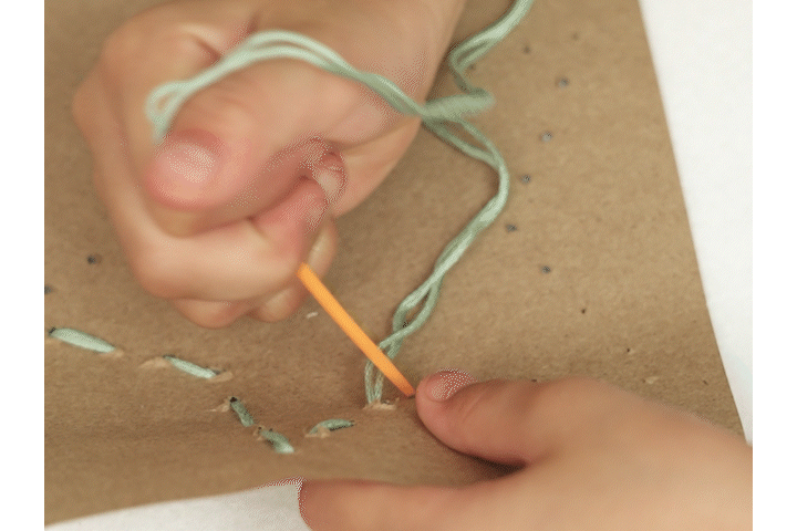 等孩子較能掌握平針縫的技巧後,可以讓孩子慢慢練習回針縫